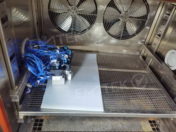 檢測并評價產(chǎn)品在不同環(huán)境負(fù)荷條件下的功能和性能表現(xiàn),包括高低溫存儲、低溫啟動、低溫工作、高溫工作、溫度沖擊、溫度梯度試驗、耐濕熱性能、耐鹽霧性能、溫濕度循環(huán)試驗、冰水沖擊試驗、凝露試驗、抗化學(xué)物質(zhì)腐蝕試驗等。