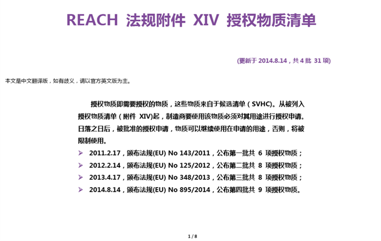 點擊下載REACH法規(guī)附件14授權(quán)物質(zhì)清單31項