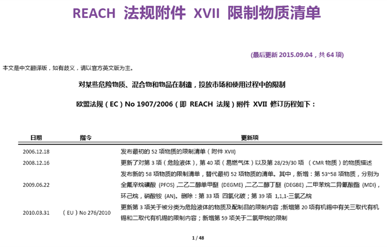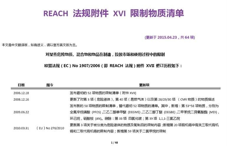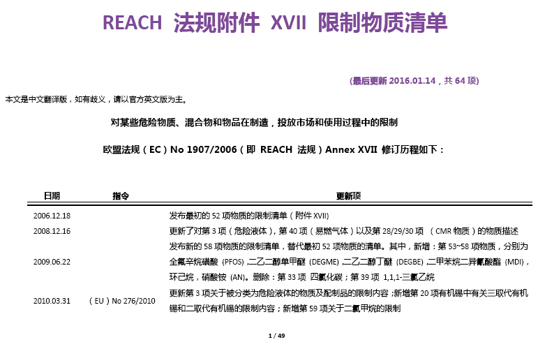 點擊下載REACH法規(guī)附件17限制物質(zhì)清單64項