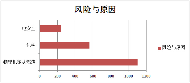 在產(chǎn)品被召回的原因中,首當(dāng)其沖的是機(jī)械物理及燃燒類的風(fēng)險(xiǎn),在所有的被召回產(chǎn)品中,有近60%的產(chǎn)品是因?yàn)榇孙L(fēng)險(xiǎn)被召回;而排在風(fēng)險(xiǎn)第二位的是因?yàn)榛瘜W(xué)有害物質(zhì)帶來的,因此風(fēng)險(xiǎn)招致的召回案例占總召回案例逾30%;而因?yàn)殡姲踩珕栴}導(dǎo)致召回的產(chǎn)品也占到了逾15%的比例。