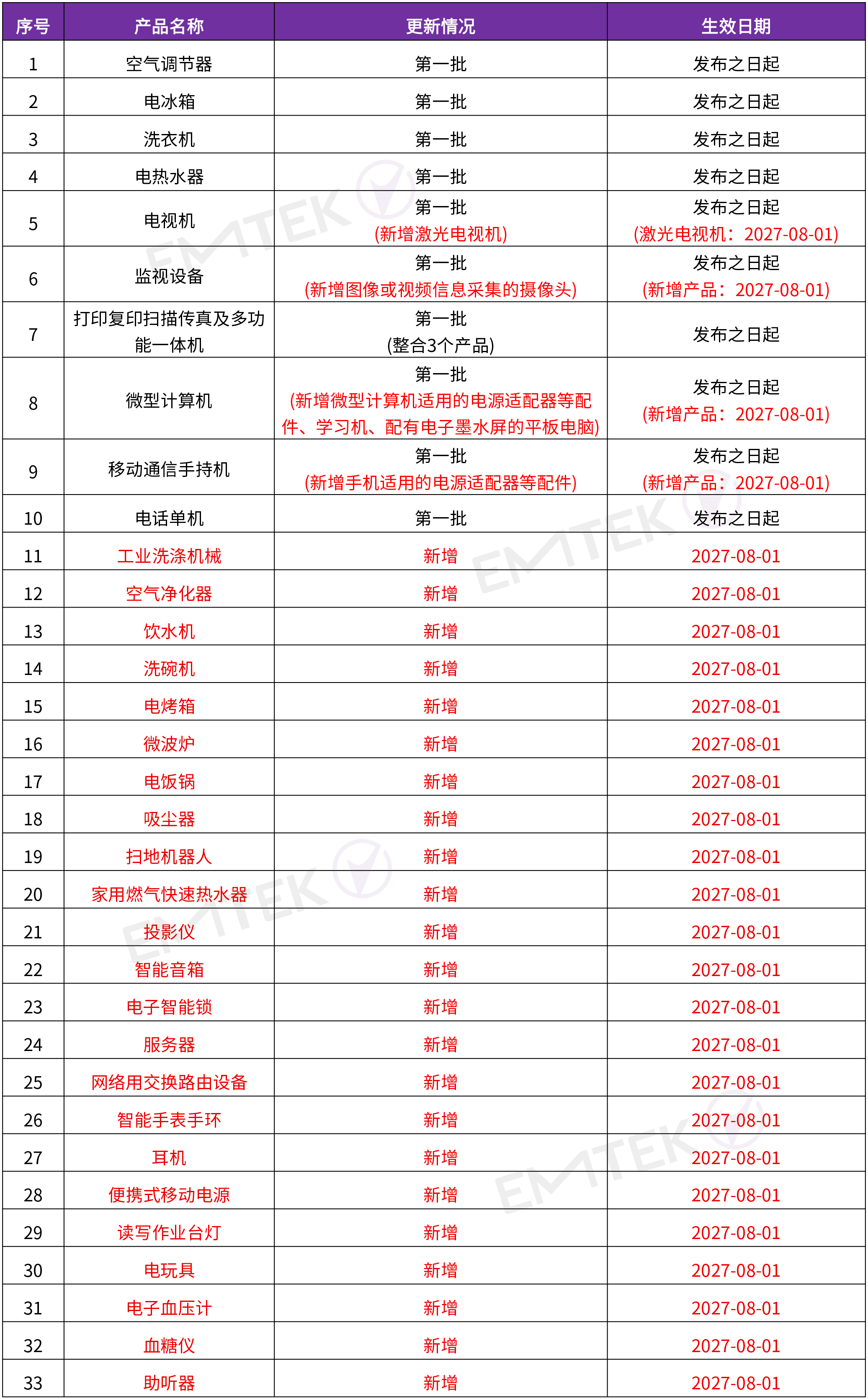 將第一批12 種產(chǎn)品優(yōu)化整合為10 種(原有的打印機、復印機、傳真機3 種產(chǎn)品根據(jù)技術(shù)發(fā)展情況合并為打印復印掃描傳真及多功能一體機),新增23 種管控條件較為成熟的產(chǎn)品。調(diào)整后,《達標管理目錄》內(nèi)共計包含33 種產(chǎn)品,均為消費者日常生活中使用場景多、使用頻次高的電器電子產(chǎn)品。