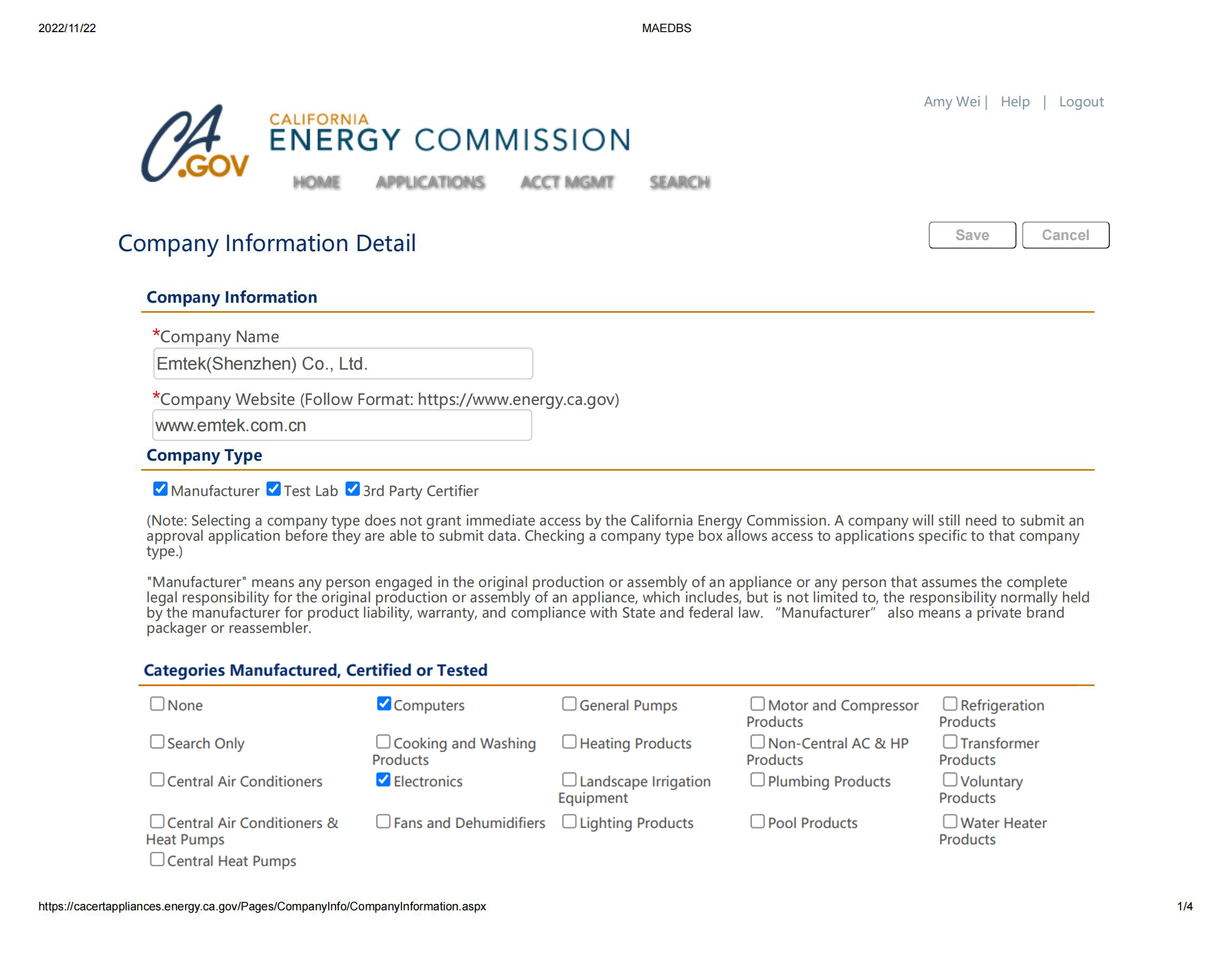 加州能源委員會 (CEC) 要求受監(jiān)管的電器必須滿足CEC Title20電器能效標準要求,并在CEC能效數(shù)據(jù)庫系統(tǒng)(MAEDbS)中注冊列名,注冊信息包括品牌名稱、制造商名稱和型號等。