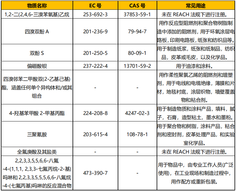 本次新增的 9 項(xiàng)高關(guān)注物質(zhì)詳細(xì)信息如下: