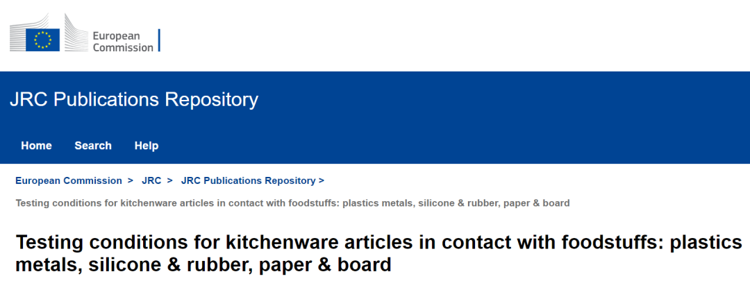 2023 年 7 月,歐盟聯(lián)合研究中心(Joint Research Centre , JRC)發(fā)布第四版食品接觸廚具測試條件指南。指南中例舉了塑料類、金屬類、硅膠和橡膠類、紙和紙板類的廚具產(chǎn)品的測試條件。