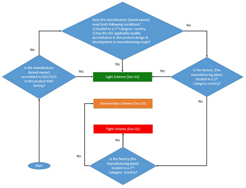 埃及國家電信管理局(NTRA)于2023 年 5 月底在TRA 官網(wǎng)更新了認證模式及流程圖。NTRA 的認證依據(jù)制造商來確定適用模式,針對品牌制造商所在下列地區(qū)分別適用NTRA 三種認證模式:Light, Tight 及Intermediate Scheme。
