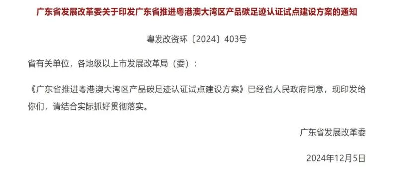 為響應(yīng)國家碳達(dá)峰碳中和戰(zhàn)略,廣東省發(fā)展和改革委員會 2024 年 12 月 5 日發(fā)布了《廣東省推進(jìn)粵港澳大灣區(qū)產(chǎn)品碳足跡認(rèn)證試點建設(shè)方案》。