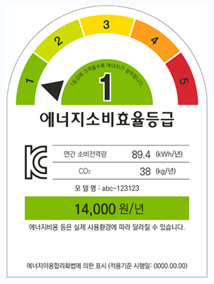韓國 MEPS 能效等級標(biāo)簽示例如下: