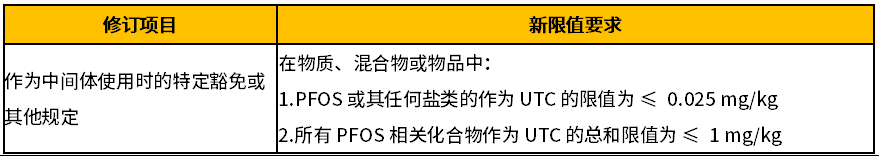 對PFOS限制要求的修訂內(nèi)容如下: