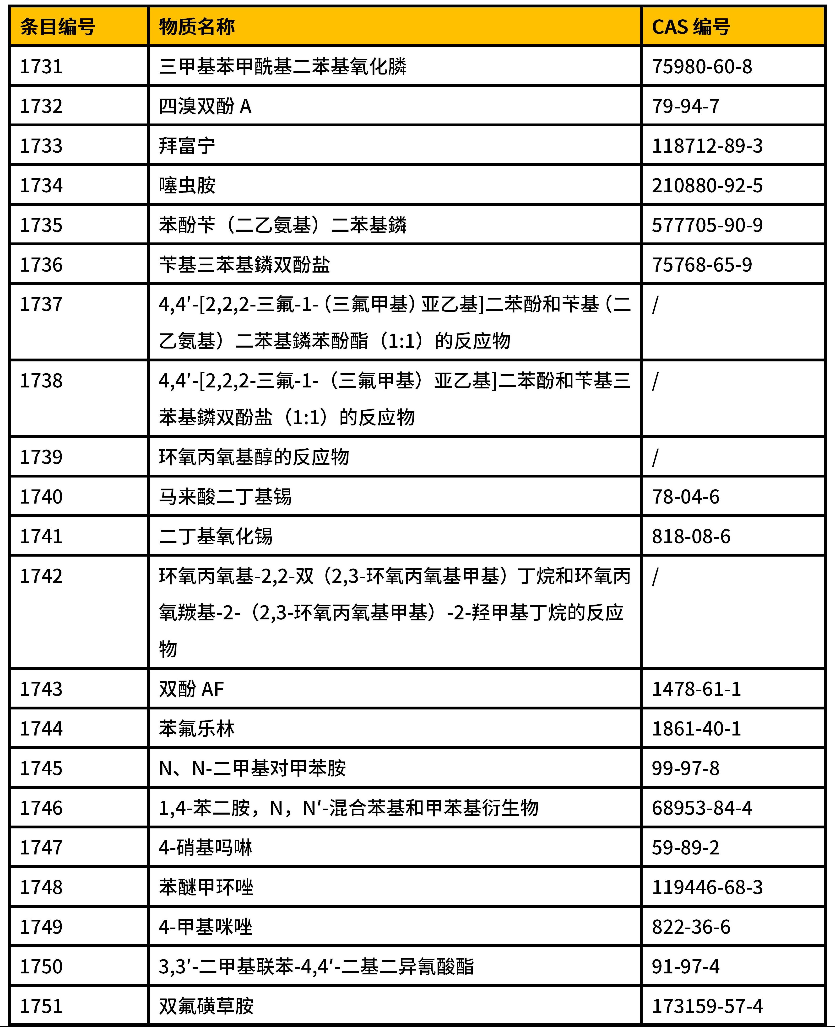 2025年6月27日,歐洲化學(xué)品管理局(ECHA)對被提議加入高度關(guān)注物質(zhì)(SVHC)清單的1項物質(zhì)開展公眾咨詢,關(guān)于這項物質(zhì)的信息如下表所示。公眾咨詢截止至2025年8月11日。