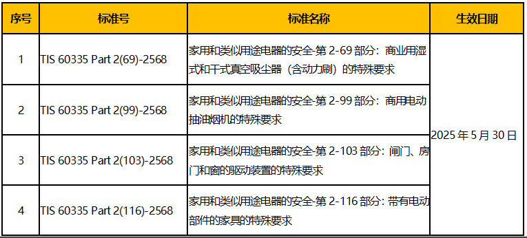 泰國工業(yè)標準協(xié)會(TISI)于2025年2月7日更新TISI標準清單,新增多項自愿性標準,見表。